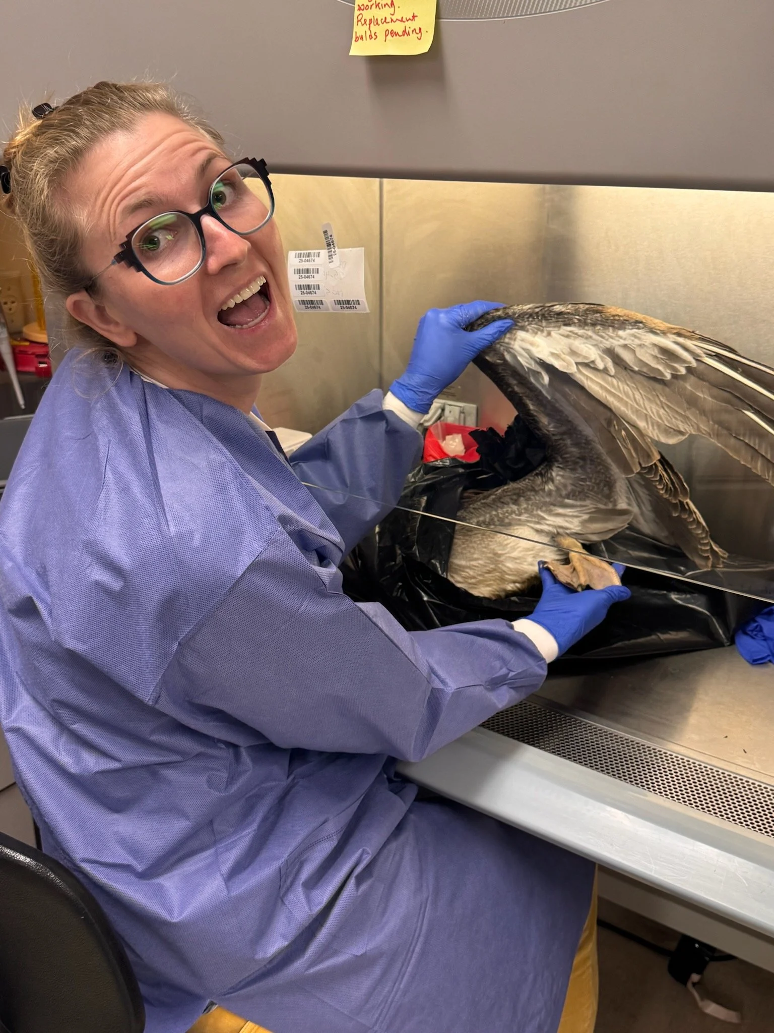 The lab also supports wildlife disease surveillance. A pelican submitted for West Nile virus monitoring, for example, may have throat swabs collected and sent for RNA testing. These results help public health officials track disease activity and respond before risks spread to people.